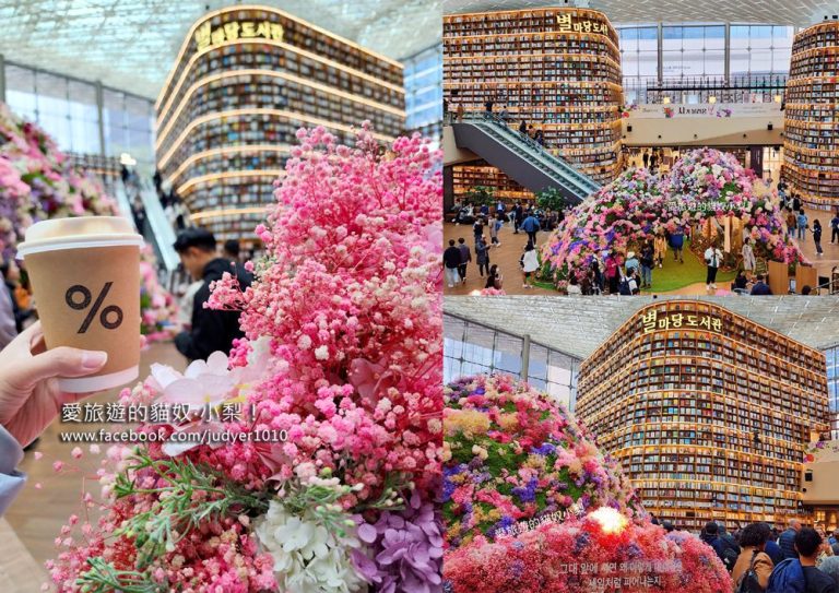 星光圖書館(星空圖書館)별마당도서관,位於三成站附近的COEX MALL中心廣場,雙層挑高空間,無論白天或晚上去,都給人滿滿的視覺震撼,且不定期會更換中間的裝置藝術,所以讓它一直是大家爭相拍照的景點。另外,附近還有不少韓劇的景點,如:COEX水族館、奉恩寺等,大家都可以一併安排哦!