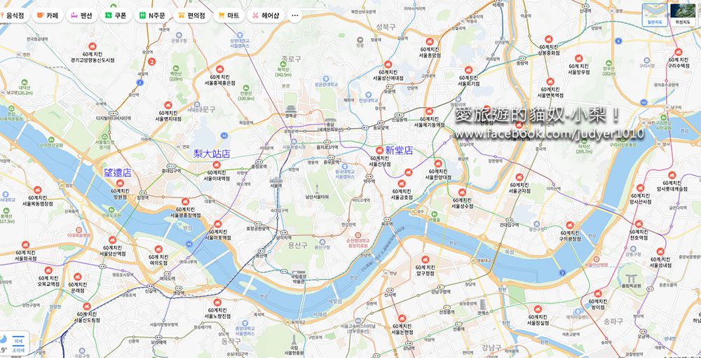 60雞炸雞60계치킨在韓國有多家分店,首爾、釜山、濟州島都有,大家要去韓國之前可以自行用NAVER MAP搜尋”60계치킨”,確認住處附近有沒有,以及該分店是否持續營業哦~