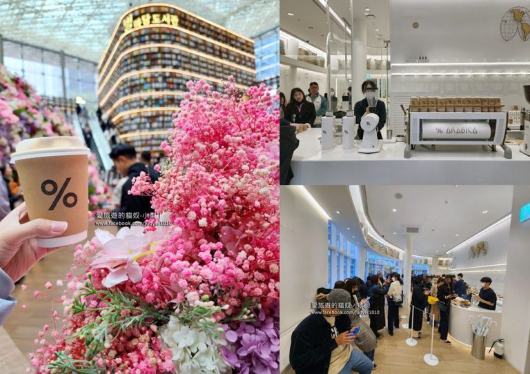 首爾美食首爾咖啡廳推薦,% ARABICA咖啡응커피很有名,在日本京都超火,在2022年/9月進駐江南美美的COEX MALL星空圖書館1樓,我是在2023/3、4月韓國自由行去的~
