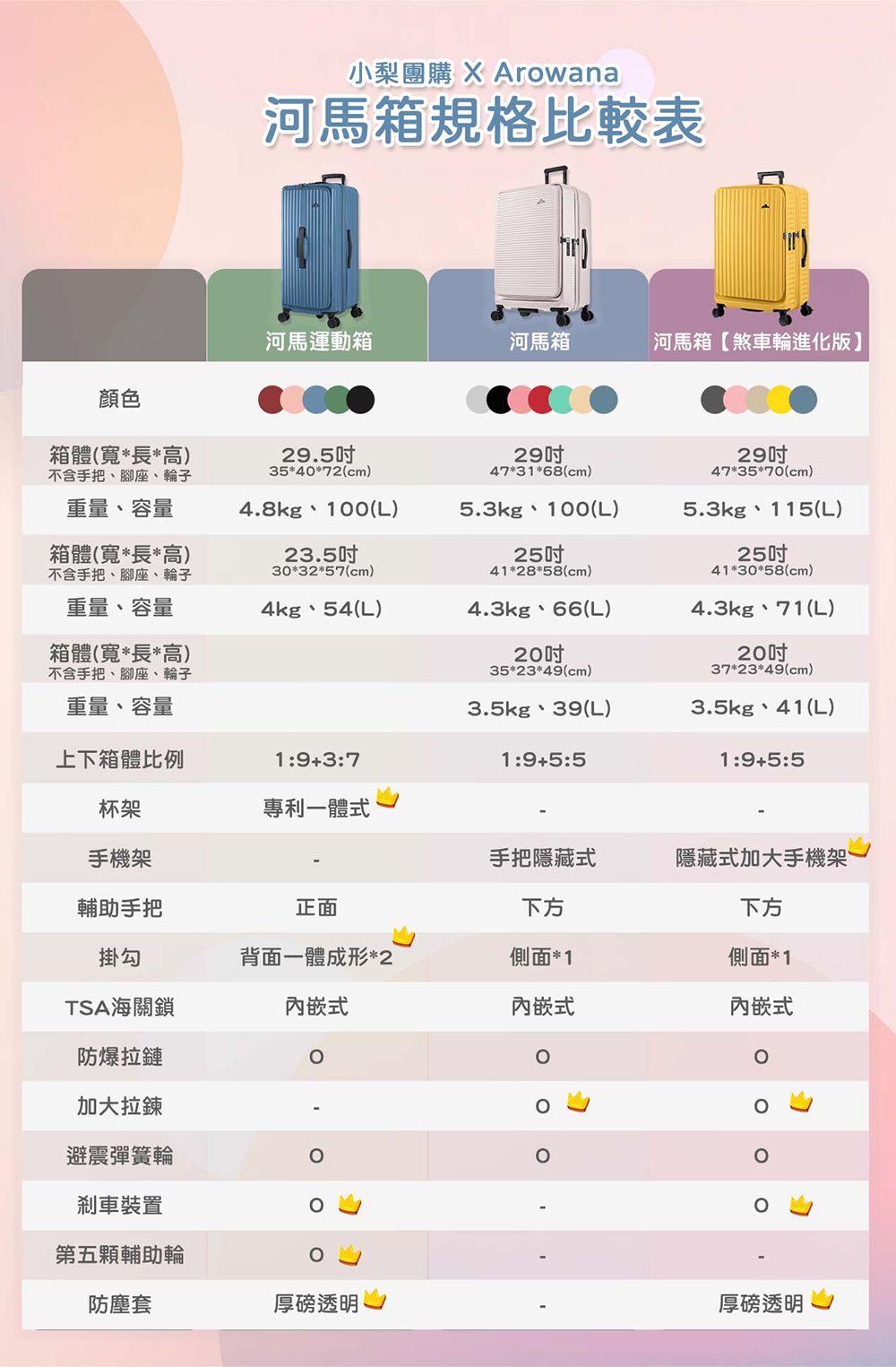 我團購的行李箱們,在用料方面都是挑選成本較高的,可以把損壞機率大大降低,從我2017年跟Arowana配合至今,無論是否在保固期內,有任何問題,Arowana客服都會幫我們快速服務到好,這點非常重要!