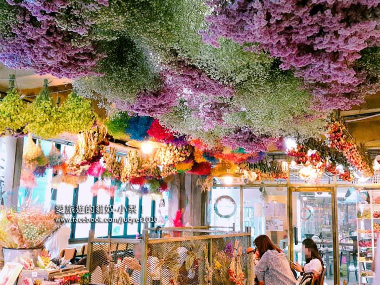 一進門就被美麗的乾燥花束海天花板給吸引了!這也太美了吧~哈