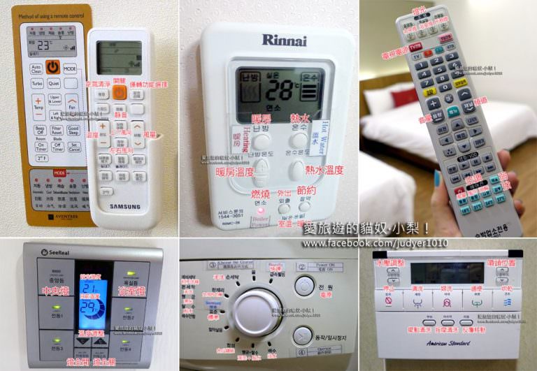 因為我看不懂韓文,英文也很爛,所以每次我到韓國一進房間,就會先看看冷氣、地熱、燈光、免治馬桶、洗衣機等的各項機器,是否有我看得懂的中文說明(或簡易英文說明),如果沒有,我就會把我要用到的部分,用比手畫腳+破英文的方式,直接向韓國飯店(民宿)人員問清楚,例如夏天就會問冷氣、而冬天會問地熱(暖氣、電熱器)這樣。