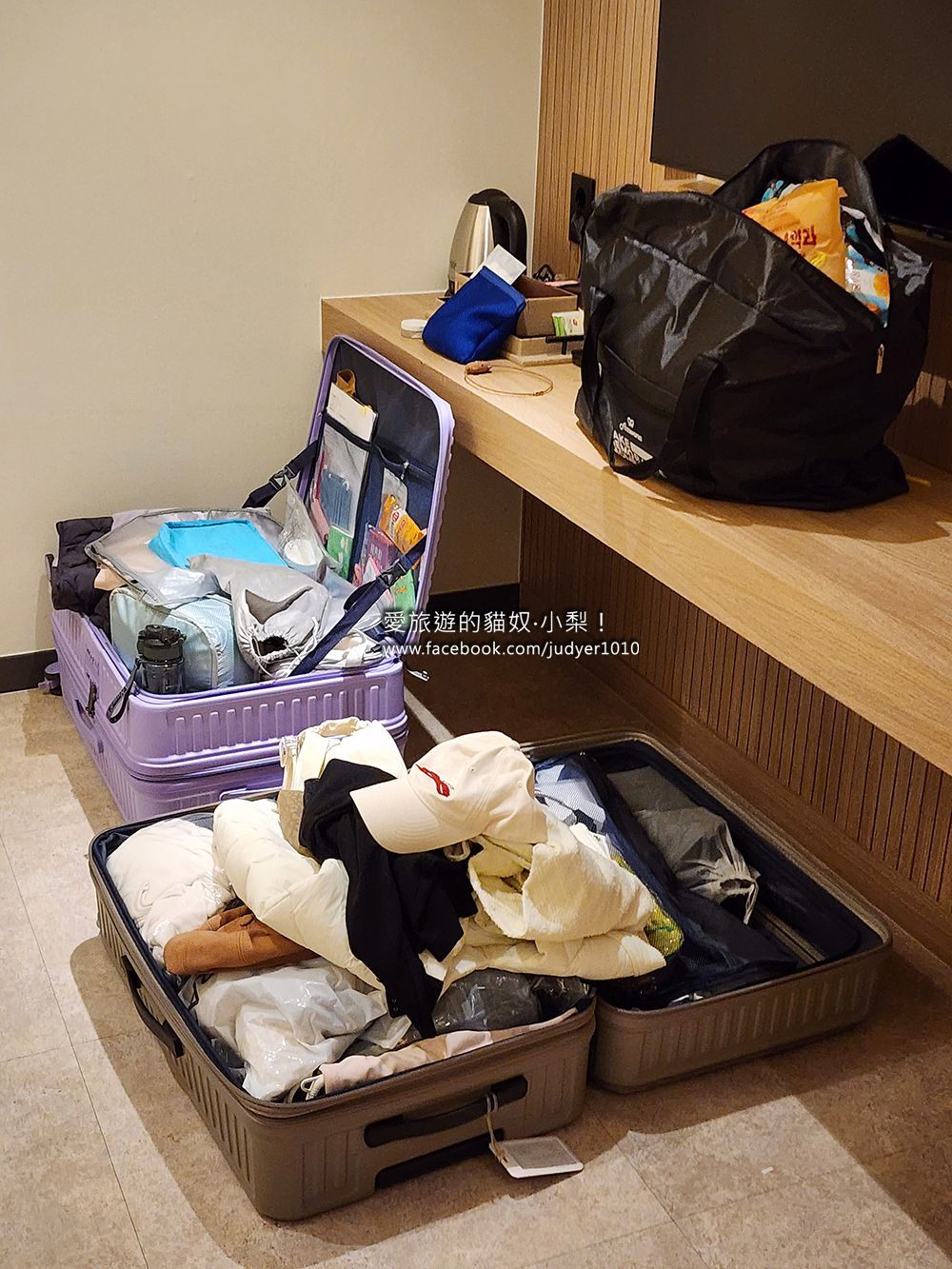 真心的必須要再次讚嘆我的行李箱們!又美又好用,在空間大的房間可以用前開式打開2個29吋+1個25吋的河馬箱(點我看介紹),如下圖