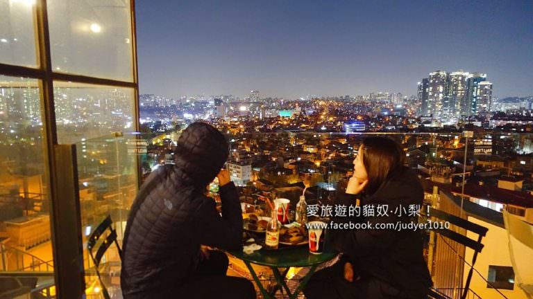 這是我走出去二樓的室外座位區拍的,這裡可以將梨泰院的美景盡收眼底,一個個的傳統矮樓屋頂,配上遠方的高樓林立,這衝突真的美極了!