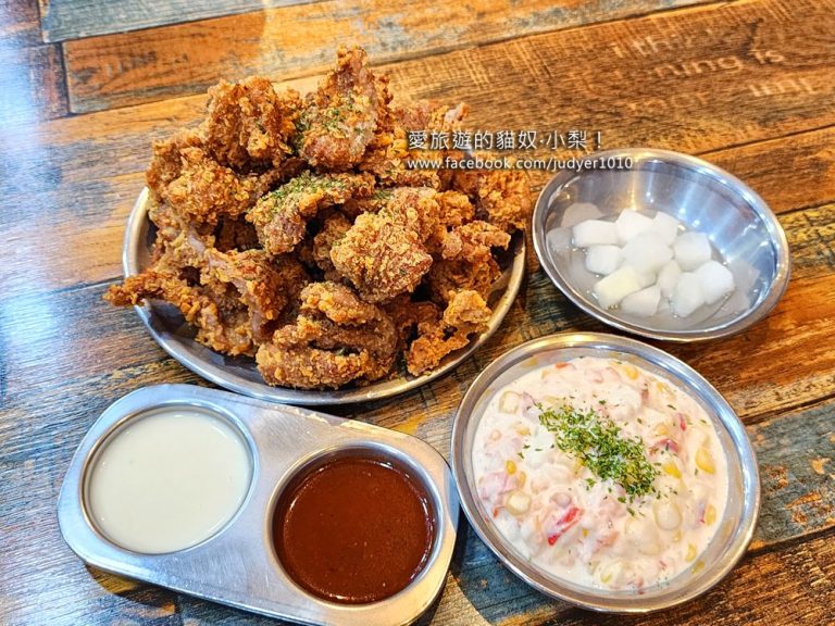 將將!酥炸豬排上桌啦,先拍大合照~我們當天點了一份小份的原味炸豬排돼.갈후라이드+玉米沙拉콘샐러드
