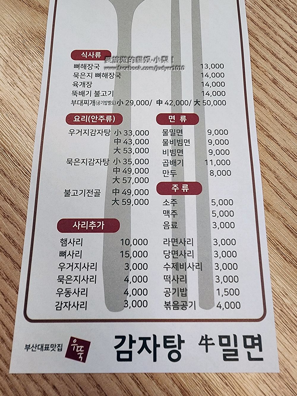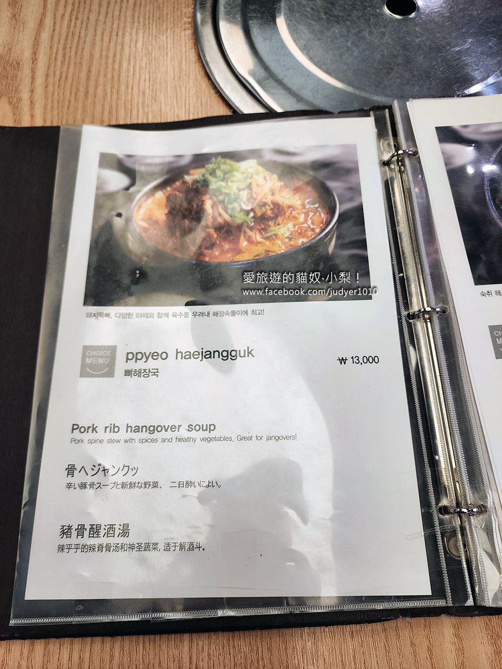 MENU翻譯如下~我們都點了13000韓元的뼈해장국,就是一人份的骨頭醒酒湯,哈