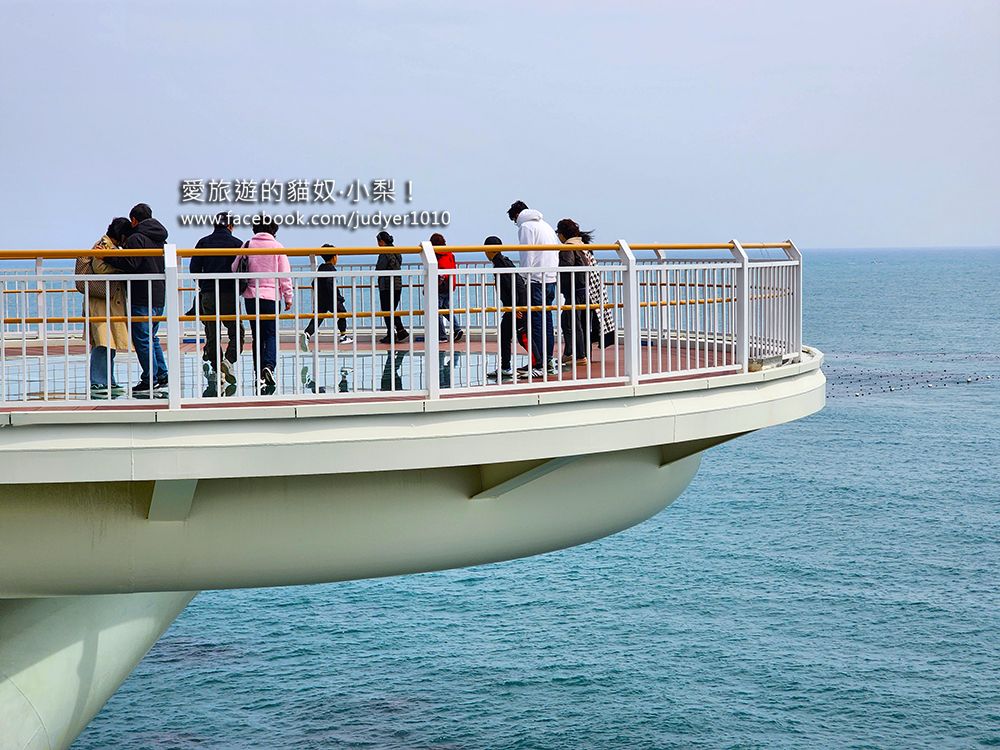 海月展望台해월전망대(海月天空步道),是於2024年7月底開放的釜山新景點,就位於海雲台藍線公園 尾浦站與青沙浦站的中間,我們是在2025/3月釜山自由行搭乘天空膠囊列車從尾浦出發到青沙浦,下車之後,再從青沙浦往回走 (尾浦的方向) 一路慢慢散步步行海邊的木棧道,就會經過海月展望台了,拍完照再走回尾浦,春天及秋天來走這一段很舒服,推薦給大家哦~