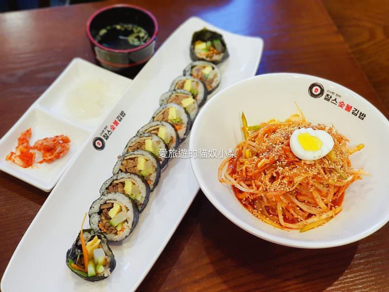 將將!上菜啦!我們點了炭火紫菜包飯4500韓圜及筋道拌麵6000韓圜