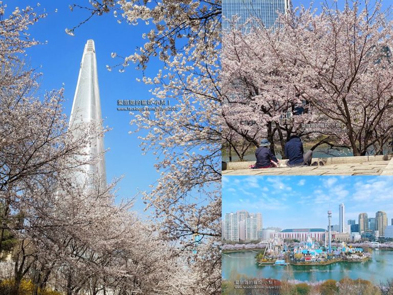 韓國首爾賞櫻\石村湖水公園,蠶室站樂天世界、樂天世界塔旁~推薦上塔俯瞰全景!
