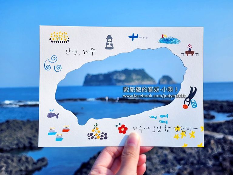 濟州島必買 \ 細花氏文具店的濟州島輪廓鏤空明信片,濟州島拍照必備!