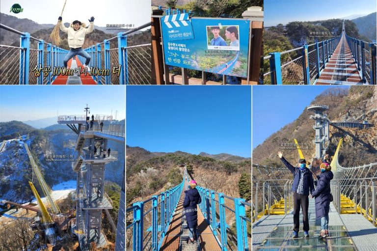 小金山吊橋、鬱陵吊橋皆位於江原道原州市,我們是在2023/1月首爾自由行去的,其中的小金山懸索吊橋소금산출렁다리就是韓綜《無限挑戰》裡面,劉在錫打掃的橋,這裡也有出現在韓劇《雖然是精神病但沒關係》裡面(金秀賢、徐睿知主演),另外,走過緊貼著小金山大峽谷峭壁的小金棧道之後,還有2022/1/22開放的新景點Sky Tower+鬱陵吊橋,非常刺激,很值得、很推薦大家去走一趟哦~